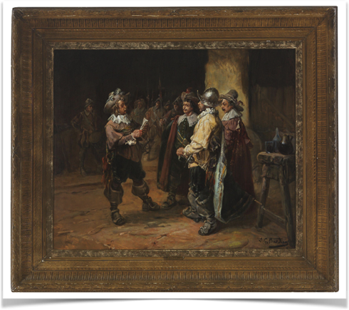 Luigi Giorgio Baldero was born in 1842 Italy in the mid-19th century. From childhood, he developed the ability to paint, decided to study art education, and in 1860 he started studying at the Roman Academy of Arts. After all, academies create genre works, depicting romantic rural species native to Italy with elaborate paradigms, as well as work on historical themes. In 1870 Baldero decided to continue his art education and relocated to France and attended the Paris Academy of Arts. After graduating from the Academy of Fine Arts, Luigi Giorgio undertook to create his own colourful works of the forgotten genres of bamboo and bodegona. He is known primarily for genre figure and tavern scene paintings focusing on the Musketeers.