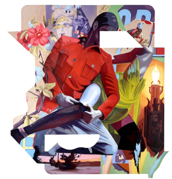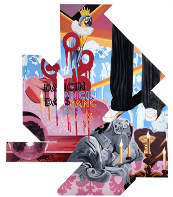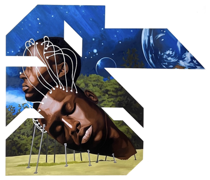Medium: Oil, spray paint on repurposed structured wooden board